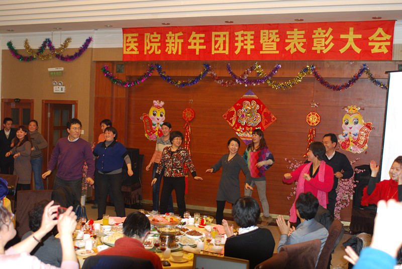 2013年1月11日晚,太阳网集团tcy8722医院2013新年团拜暨表彰会在红果园二楼餐厅举行。校党委曹国永书记、高艳副书记、郑广天校长助理,部分院系和职能部处的领导莅临现场,老太阳集团tcy8722网站班子成员和离退休同志代表应邀出席,与全体医务人员一起喜迎新年。