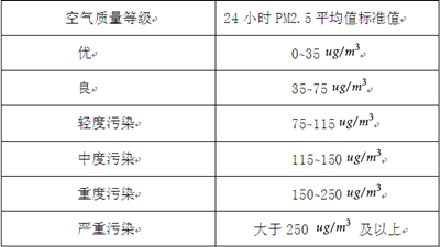 根据PM2.5检测网的空气质量新标准,24小时平均值标准值分布如下: