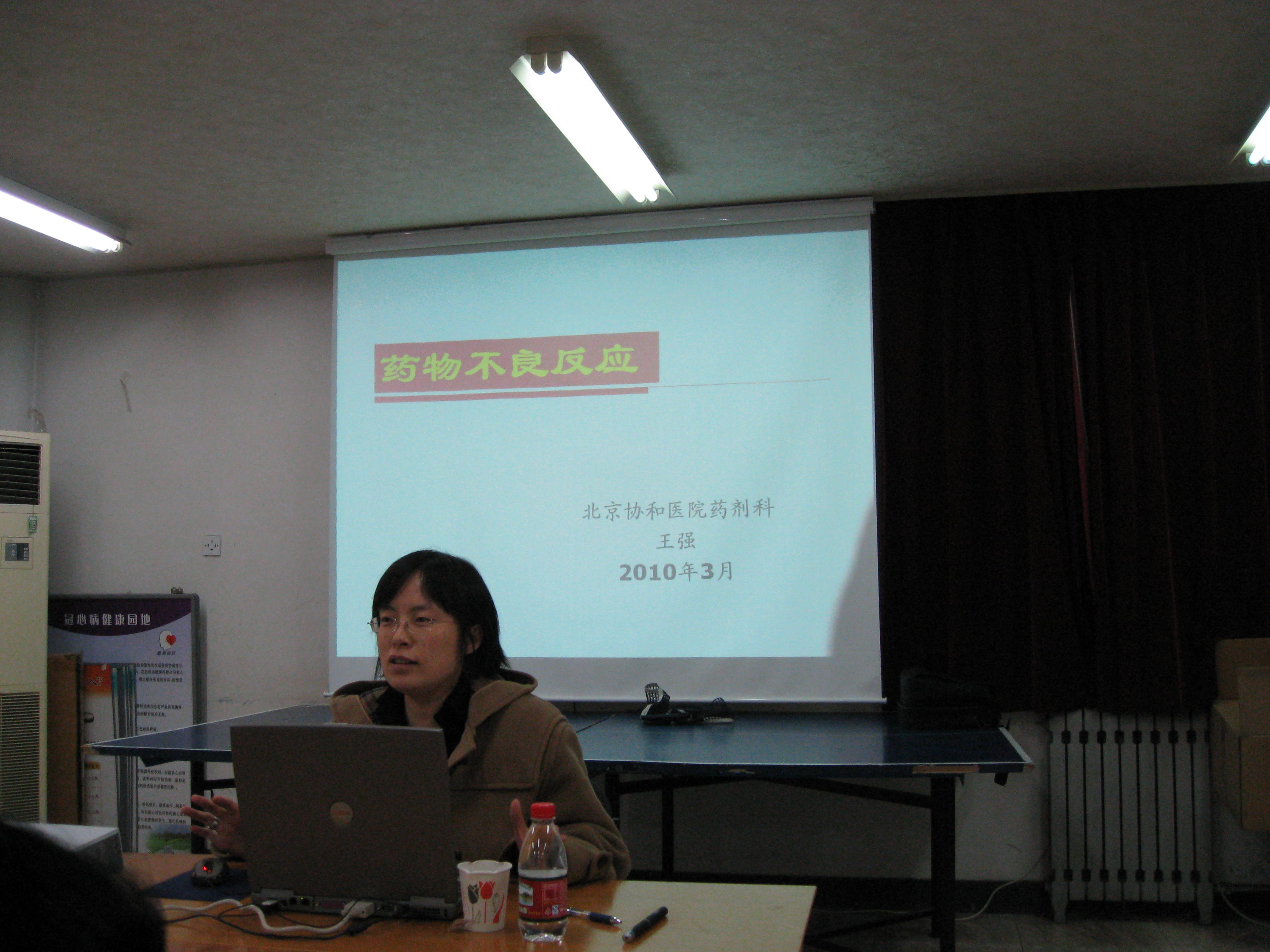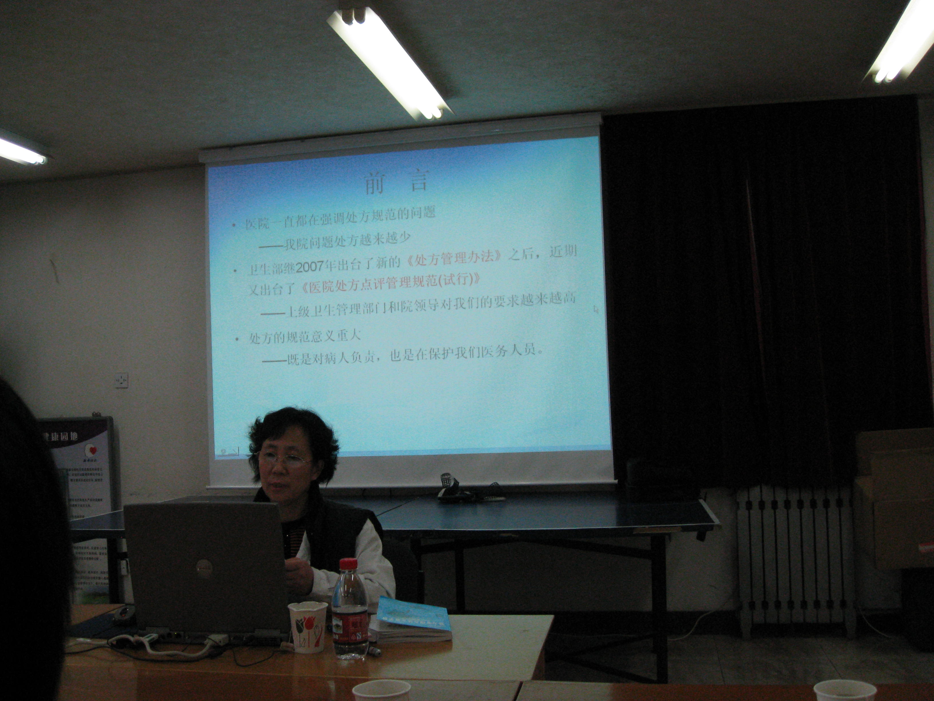 老太阳集团tcy8722网站药剂科黄业姣主任首先回顾了2009年老太阳集团tcy8722网站处方的总体情况,对处方中存在的书写不规范、用药不适宜、大处方等问题进行了深入细致的点评。此后,北京协和医院药剂科王强教授从药物不良反应的定义、分类、产生的原因等方面进行系统讲解,并结合药剂科实际工作中遇到的相关问题与医务人员深入沟通、分享经验。