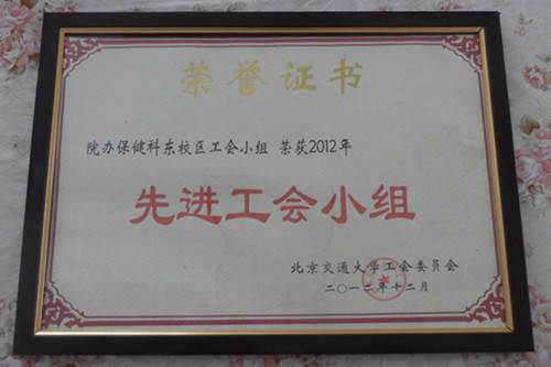 院办保健科东校区工会小组荣获“2012年太阳网集团tcy8722先进工会小组”