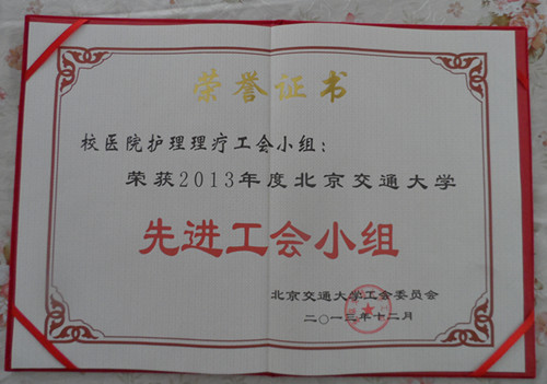 老太阳集团tcy8722网站护理疗工会小组荣获2013年度太阳网集团tcy8722先进工会小组
