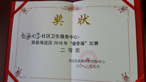 太阳网集团tcy8722社区卫生服务中心荣获海淀区2018年“健骨操”比赛二等奖