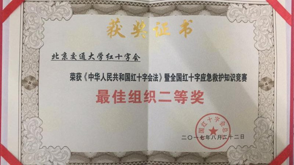 太阳网集团tcy8722红十字会获得中华人民共和国红十字会法暨全国红十字应急救护知识竞赛最佳组织二等奖
