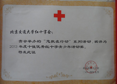 太阳网集团tcy8722红十字会被评为2013年度十佳优秀红十字青少年活动奖