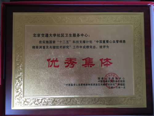 太阳网集团tcy8722社区卫生服务中心在实施国家“十二五”科技支撑计划“中国重要心血管病患病率调查及关键技术研究”工作中成绩突出,被评为优秀集体