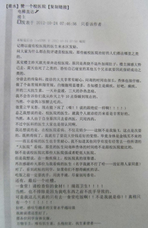 2012.10.24学生在知行发帖《赞一个老太阳集团tcy8722网站》感谢李寒娟大夫