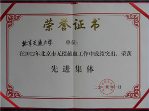 2012年,我校累计组织校园大型无偿献血活动3次,赴血液中心成分献血及献全血6次,组织郭明义“思源”爱心小分队赴空军总医院献血活动1次,组织校园互助献血7次,全年共有633位师生无偿献血,献血量共计133900ml。2012年5月20日组织“青春热血传递生命感动”校园大型献血活动、2012年9月23日组织“感恩思源血脉相承”校园无偿献血暨感恩回馈活动,2012年11月25日组织“温暖冬季,爱心总动员”校园无偿献血暨感恩回馈活动,3次在天佑会堂前厅开展的献血车进校园活动,共有525名师生献全血,献血量共达112100ml;组织108位师生赴血液中心捐献成分血,共计捐献109单位(200ml/单位)血小板。由于贡献突出,我校被评为2012年度北京市无偿献血先进单位。