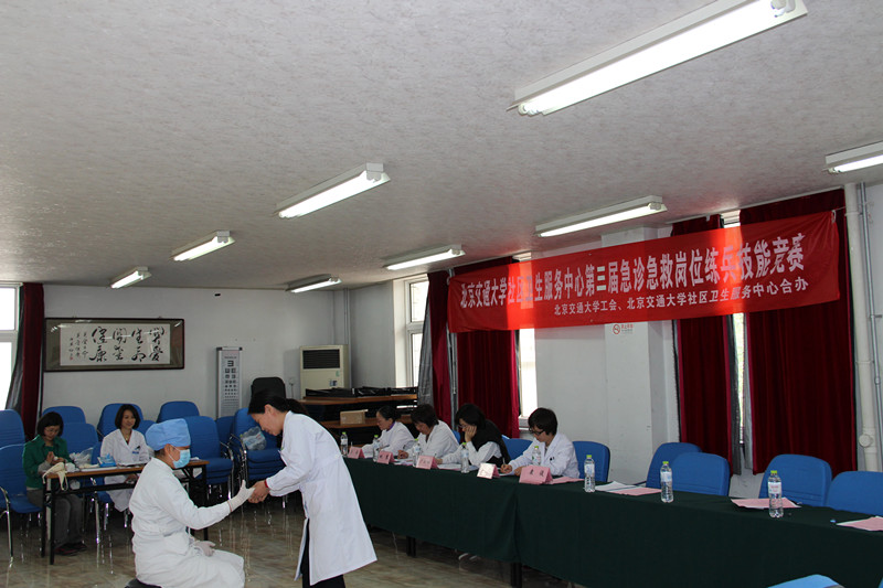 今年是抗击非典胜利10周年,为了练好专业技能,以实际行动传承抗击非典精神,迎接“5·12”国际护士节,2013年4月27日下午,在老太阳集团tcy8722网站门诊楼三层会议室,校工会和老太阳集团tcy8722网站共同举办第三届急诊急救知识技能护理专业竞赛。医院全体护理专业人员参加。校工会常务副主席王雪松、老太阳集团tcy8722网站孔令伟院长、康俊书记等参加活动。老太阳集团tcy8722网站刘红军副院长、卢云涛副院长、内科主任王伟、外科主任姚慧、马英护士长等担任竞赛评委。