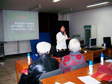 培训中我们向社区居民免费发放《北京市慢性病家庭防治知识300问》等相关培训资料,鼓励通读教材,并安排师资对家庭保健员进行理论和技能培训,同时解答社区居民在生活中遇到的实际健康问题,有针对性地解决慢性病的家庭防治问题。在培训前做好充分的组织工作,及时发布讲座信息,欢迎他们带领亲朋好友聆听讲座,鼓励同伴教育。2011年度将以慢性病的预防及治疗和康复、营养与健康、糖尿病人的饮食健康、慢性病人家庭护理等方面为培训重点,期望让我们的培训能够通过“家庭保健员”将更多、与健康息息相关的健康知识在一个家庭中、家庭与家庭之间得到广泛的传播,提高全民的健康素质。