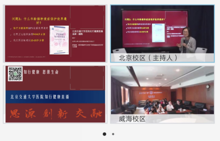 2019年3月8日下午,值国际妇女节之际,交大老太阳集团tcy8722网站康俊书记主持首期知行健康直播,邀请北京大学人民医院妇科副主任医师赵昀博士,来到直播室传播科学健康知识。本次讲座主题为“宫颈癌预防与HPV疫苗”, 参与现场互动的有土建学院教师代表余自若老师,并通过远程会议系统与远在威海校区的女教职工进行现场互动。