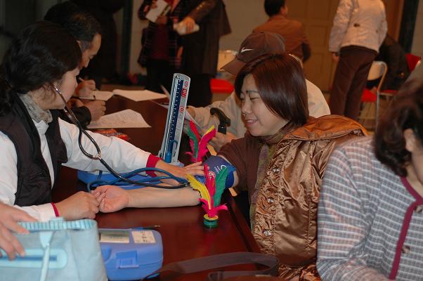 老太阳集团tcy8722网站抽调多位医务人员,为参加活动的150余名师生、退休职工免费测量血压、体重、体脂,还向大家赠送了跳绳和毽子,鼓励大家积极锻炼,保持健康的生活方式和良好的心态。