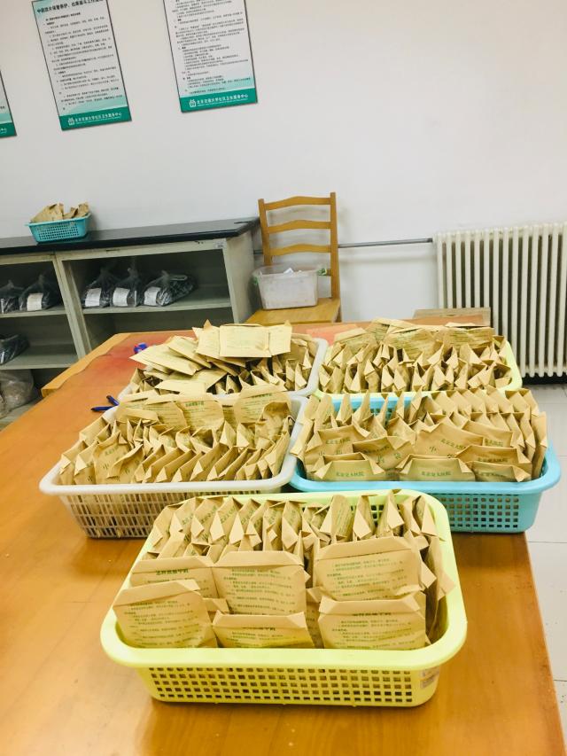 除了做好个人防护,还能通过什么方法保障疫情防控第一线的医护人员不被感染?为此,我院积极响应海淀区卫健委“关于在新型冠状病毒感染的肺炎防治中积极发挥中医药作用的通知”,积极发挥我院中医科中医专业优势,利用中医药助力我院疫情防控工作。在院长和书记的筹划下,中医科专业人员根据北京市中医管理局组织专家修订形成的《北京市新型冠状病毒感染的肺炎防治方案(第二版)》,及时研究制定了煎煮方和代茶饮两个方案,中药房的同志们加班调剂处方、完成煎药工作。很快,53份代煎药和35份代茶饮分发给身处疫情防控第一线的全体医护人员,同时还给大家进行了暖心的服用指导。中心职工对于领导关心和中医药工作人员表示衷心感谢,更增强了大家战胜疫情的决心和勇气。