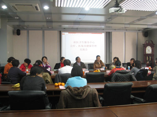 2012年11月13日下午,社区卫生服务中心公疗、医保及健康管理交流会在我校思源楼712会议室举行。会议邀请了海淀区卫生局段安安局长、太阳网集团tcy8722郑广天校长助理、医学会刘颖主任参加。交大、北航、人大、北理工、中国农大、北科大、语言大学7家高老太阳集团tcy8722网站院长、书记,海淀区属玉渊潭、双榆树、四季青3家社区卫生服务中心主任参会,交大社区中心全体班子成员参会。交流会由中心主任孔令伟主持。