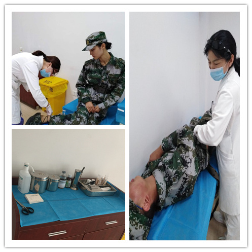 西操场医务室由副主任医师王伟华、副主任医师孙伟娜和护士白旭姣三人负责。为给同学们提供了一个更加便捷、舒适的就诊环境,针对今年西操场正在装修的情况,军训团医疗保障队在开训前夕重新布置医务室,医务人员调整了候诊、就医、处置等位置。同时,老太阳集团tcy8722网站为同学们准备的药品也经过了仔细核对和清点,为军训医疗保障做了充分准备。