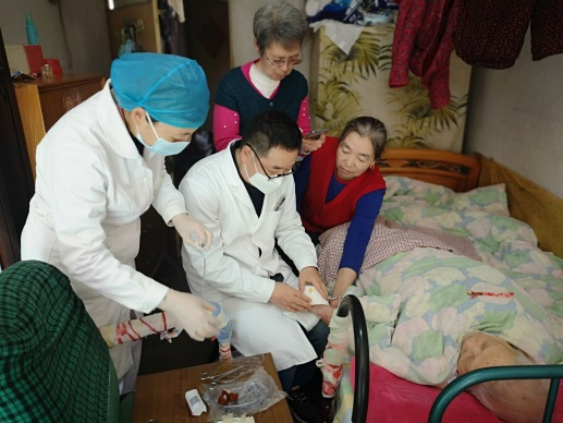 社区居民渠老师,今年101岁高龄了,她行动不便,属于失能老人,是我中心签约的老患者了,她的家人于2011年就在我中心办理了家庭病床。近11年来,中心的医护更换了一拨又一拨,对老人的服务却始终没有间断过。我们每月为老人提供2次上门巡诊服务,平时,医务人员与家属还通过微信经常联系指导。在新冠疫情期间,上门不方便的情况下,医护通过微信视频连线,观察患者的情况,实时给予指导。半年前,老人的手无意间被桌角划伤,伤口长达10cm左右,血流不止。慌乱中,家属第一时间想到了我中心的家庭医生。虽然已经是晚上下班时间了,我们的医务人员接到求助电话后,马上向上级汇报情况,当班领导立即安排夜班医护上门为老人清创缝合、加压包扎,家属与患者非常感谢,并对医护人员的敬业精神给予了高度的评价。