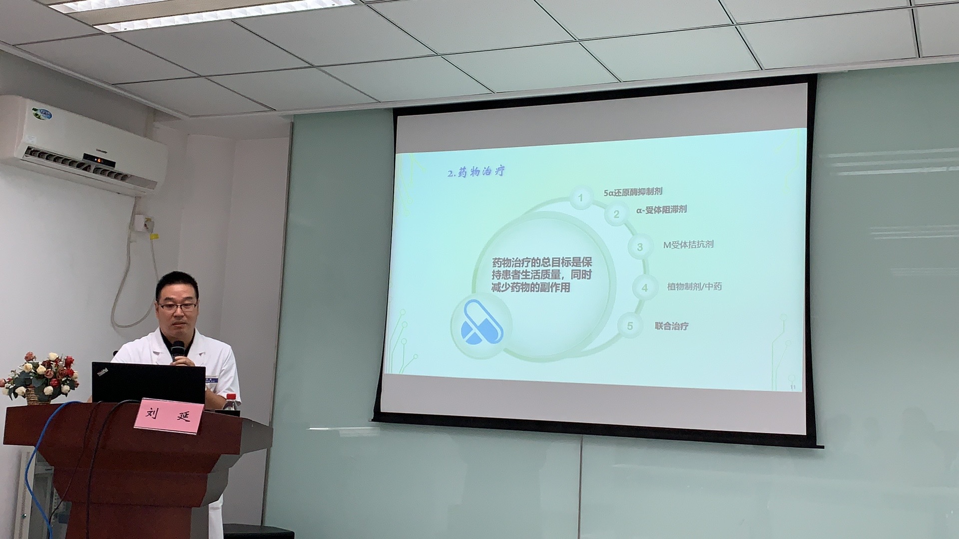 外科刘延副主任医师首先分享了前列腺增生的社区治疗。人民医院泌尿外科的徐涛主任医师给予补充和知识的扩展,并进行了专题讲座。中心院长孔令伟主持本次活动。
