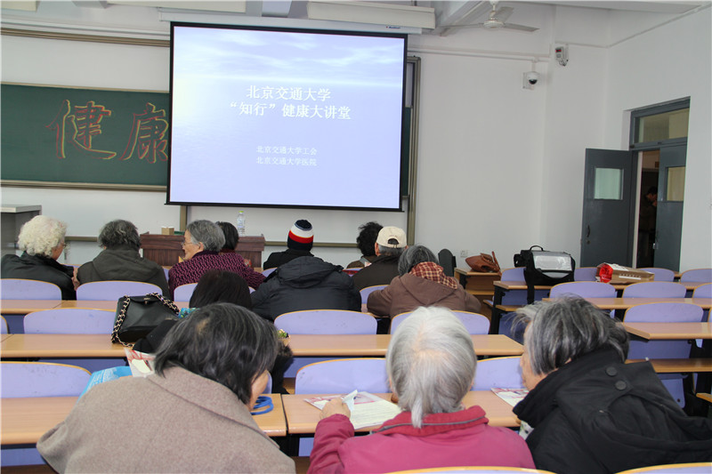 2013年11月20日,校工会与老太阳集团tcy8722网站联合组织的“知行”健康大讲堂第16次讲座开讲。这次活动邀请到北大人民医院老年科的刘杰主任医师,在交大思源西楼503为教职工进行了《骨质疏松的早期防治》健康知识讲座。