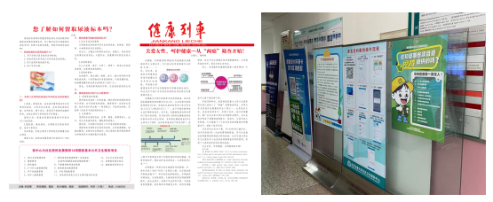 2022年7月以来,我中心利用展板、LED、宣传栏、微信公众号等多种形式开展《国家基本公共卫生》服务项目的宣传活动。我中心在8个家医团队的联系卡上标注了《国家基本公共卫生》服务项目内容,在宣传栏上介绍0~6岁儿童保健服务内容,在我院刊物《健康列车上》宣传两癌筛查等妇女保健内容。应上级要求,通过微信群,在患者、学生的及医院职工中开展了线上答题活动。并在门诊就诊电子显示屏上播放《首都市民卫生健康公约》内容,加强宣传。