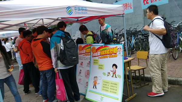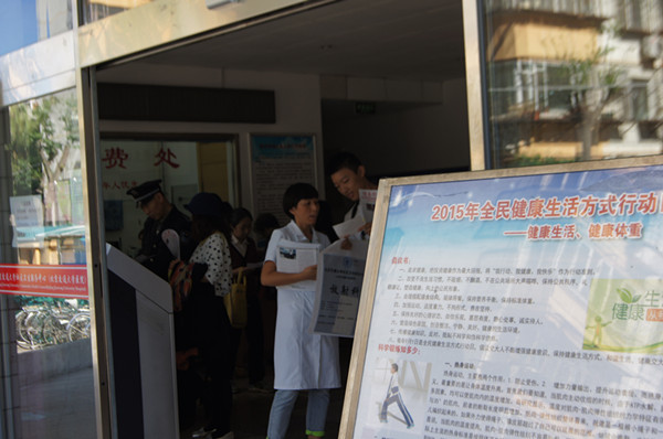 从2015年8月21日开始,医院分别在学校、家属区以及老太阳集团tcy8722网站本部开展了一系列全民健康生活方式主题宣传活动。活动期间在社区悬挂“健康生活、健康体重”宣传横幅,设计印制保持健康的生活方式、科学运动宣传展板2块、利用LED显示屏24小时在老太阳集团tcy8722网站门诊大厅循环播放全民健康生活倡议书,发布微博10余条, 9月出版的健康宣教刊物《健康列车》配合全民健康生活方式行动日着重进行了健康四大基石的诠释。在9月10日的迎接新生的现场进行健康生活方式日现场宣传咨询活动,发放宣传折页两种100余份。健康管理中心还于9月22日组织部分学生在大操场进行健步走活动,9月25日在医院门诊楼组织开展了“健康生活,健康体重”的宣传咨询活动。活动当天,健康管理中心大夫及主管领导参与了宣传活动。现场展出宣传展板2块,活动中发放了我院自行编印的《健康列车》,倡导师生追求健康,学习健康,管理健康,把投资健康作为最大回报,将“我行动、我健康、我快乐”作为求学期间的日常行动准则。许多师生都驻足阅读展板的内容,索要相关资料。