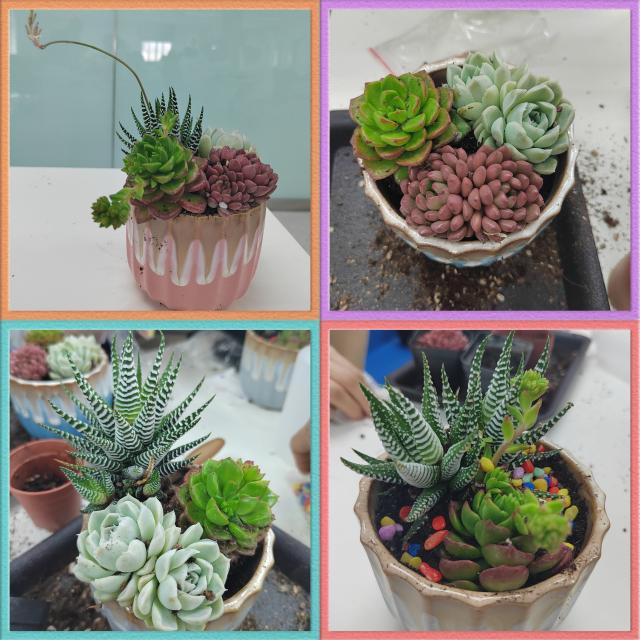 活动一开始,胡老师向我院女职工们讲解了多肉植物的习性,以及栽培时需要注意的一些事项。到了多肉组合盆栽DIY环节,大家早已跃跃欲试,手持小工具饶有趣味地制作起来,填土,配色,种植、装饰……互相帮助搭配。大家尽情释放自己的想象力,打造各具特色的“纯手工盆景”。现场氛围温馨,伴着欢声笑语,一盆一盆有模有样的多肉盆栽完工了。