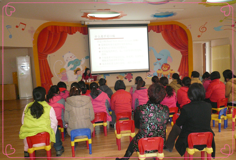2013年3月26日中午12:40—1:20在幼儿园活动中心在刘红军副院长的带领下,由刘博主任医师主讲、高娅丽副主任医师参与,利用休息时间,为幼儿园的教师进行了一次别开生面的专题讲座。刘博主任医师用通俗易懂的言语,真实清晰的图片给教师上了一堂生动的宣教课,提高了他们对手足口病的认识,丰富了知识,开拓了视野,使他们成为儿童真正的健康守护人。