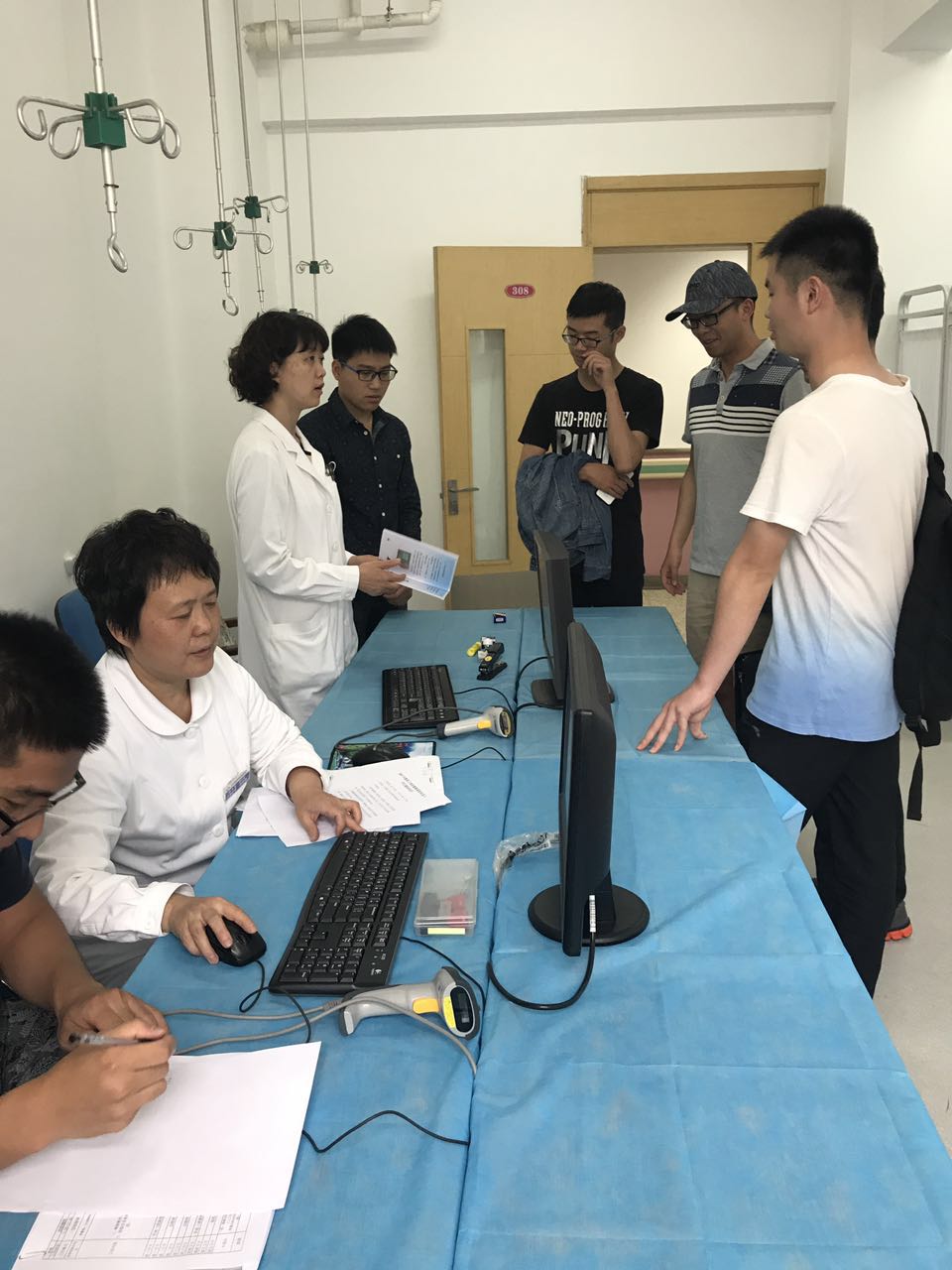 首先,项目负责人护理部田英杰护士长向全体参加培训的同学进行了整体培训,向同学们介绍了心电图检查维持秩序这个岗位的重要性以及突发、临时事件的应对、处理。内容包括:(1)考勤及时间要求;(2)着装、礼仪要求;(3)岗位职责等。随后,田老师又对负责健康调查表录入的同学进行了工作流程培训和指导。最后,护理部邀请了负责心电图读图的健康管理中心聂颖主任对学生进行了培训。聂大夫介绍了负责心电图粘贴的同学应该履行的职责,并简要交代了工作中常遇到的问题及处理办法。