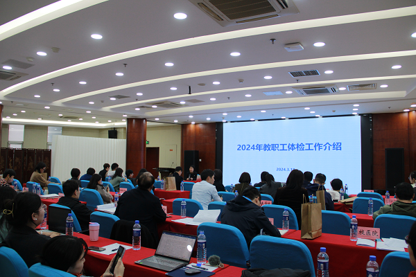 为了确保体检工作顺利进行,在学校工会大力支持下,3月18日召开“2024年教职工体检及健康管理工作交流会”,学校各二级工会主席参加了会议,会议就体检安排、体检项目的变化、体检结果的分析等进行了深入的交流和研讨,达成了共识,加强体检工作宣传,为体检工作的开展提供了有力的保障。
