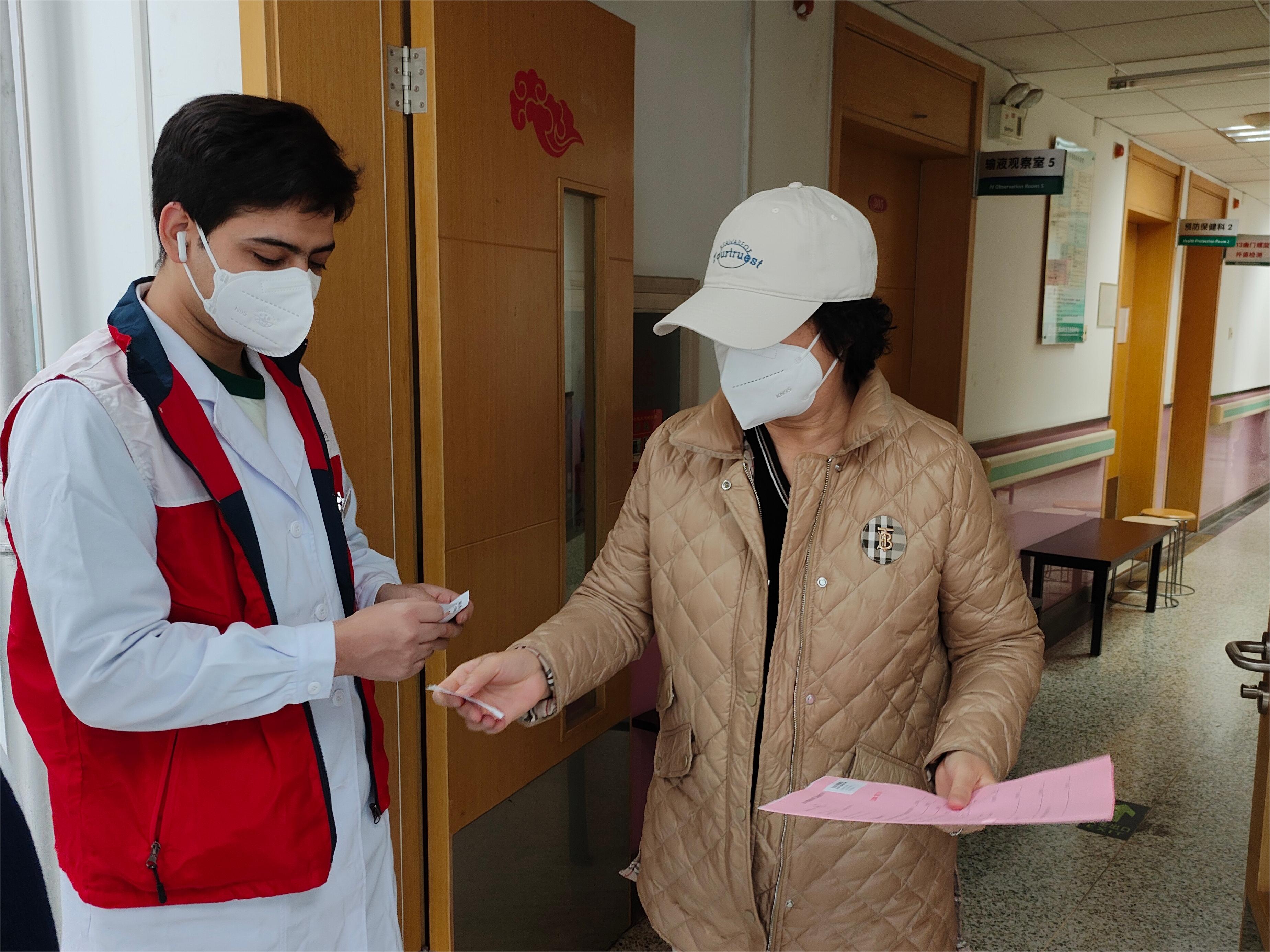3月28日是离退休老师体检的第一天,一大早就有老师前来排队,按照体检表上的提示先去一层急诊观察室领取化验单,逐项进行体检。离退休工作处安排了志愿者协助体检,学生志愿者们各司其职,给老师们发号、引导,协助完成体检工作。7:30,各项目正式开始,体检秩序井然。