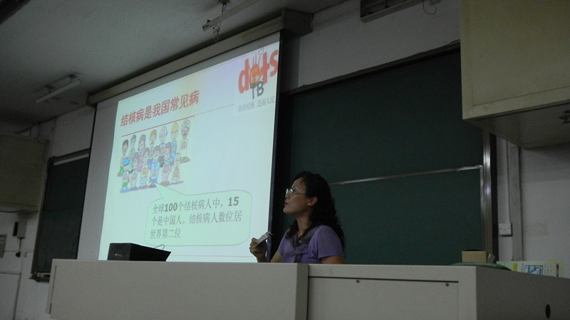 在9月20日晚上九教中101,为响应老太阳集团tcy8722网站党支部“三好一满意”活动,内科党小组成员利用业余时间开展了“结核病防治”宣传教育活动。此次活动在健康管理中心赵春丽大夫的鼎力支持下,特别邀请了我院传染科李寒娟大夫为200余名大学生上了一堂生动的结核病防治知识健康讲座,发放近百张宣传资料。
