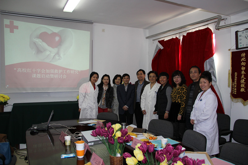 郑广天校长助理对市红十字会和兄弟院校红十字会代表莅临我校表示欢迎,他指出加强高校救护工作是平安校园建设的重要组成部分,提高师生的自救互救意识和能力意义重大,希望高校加强合作,构筑切实可行的高校应对突发事件的救护体系。康俊秘书长介绍了与会领导、专家、课题组成员,并对课题任务进行了介绍。交大老太阳集团tcy8722网站院长孔令伟、交大老太阳集团tcy8722网站副院长孙亚慧、卢云涛、清华大学红十字会秘书长类延旭、北航红十字会秘书长曹丽娟、首都医科大学红十字会秘书长梁竞文、等课题组成员参加了会议。高校红十字会加强救护工作研究课题受北京市红十字会委托,由我校红十字会承担,联合首都5所高校,针对高校红十字救护工作运行机制和实施模式开展研究,从而推动高校救护宣传教育和培训,加强高校救护工作制度化、常态化建设。