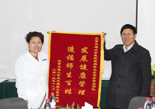 自2013年,老太阳集团tcy8722网站家医服务第五团队与土建学院建立联系,经过三年在健康咨询、健康教育、亚健康人群干预、慢性病管理等方面的积极探索,双方形成了稳定的家医服务契约模式。2015年12月30日中午,土建学院魏庆朝书记、马强副书记、工会主席孙慧环及健步走协会部分成员一行20余人莅临老太阳集团tcy8722网站进行健康管理交流,老太阳集团tcy8722网站孔令伟院长、康俊书记、刘红军副院长、卢云涛副院长及相关工作人员出席交流会。
