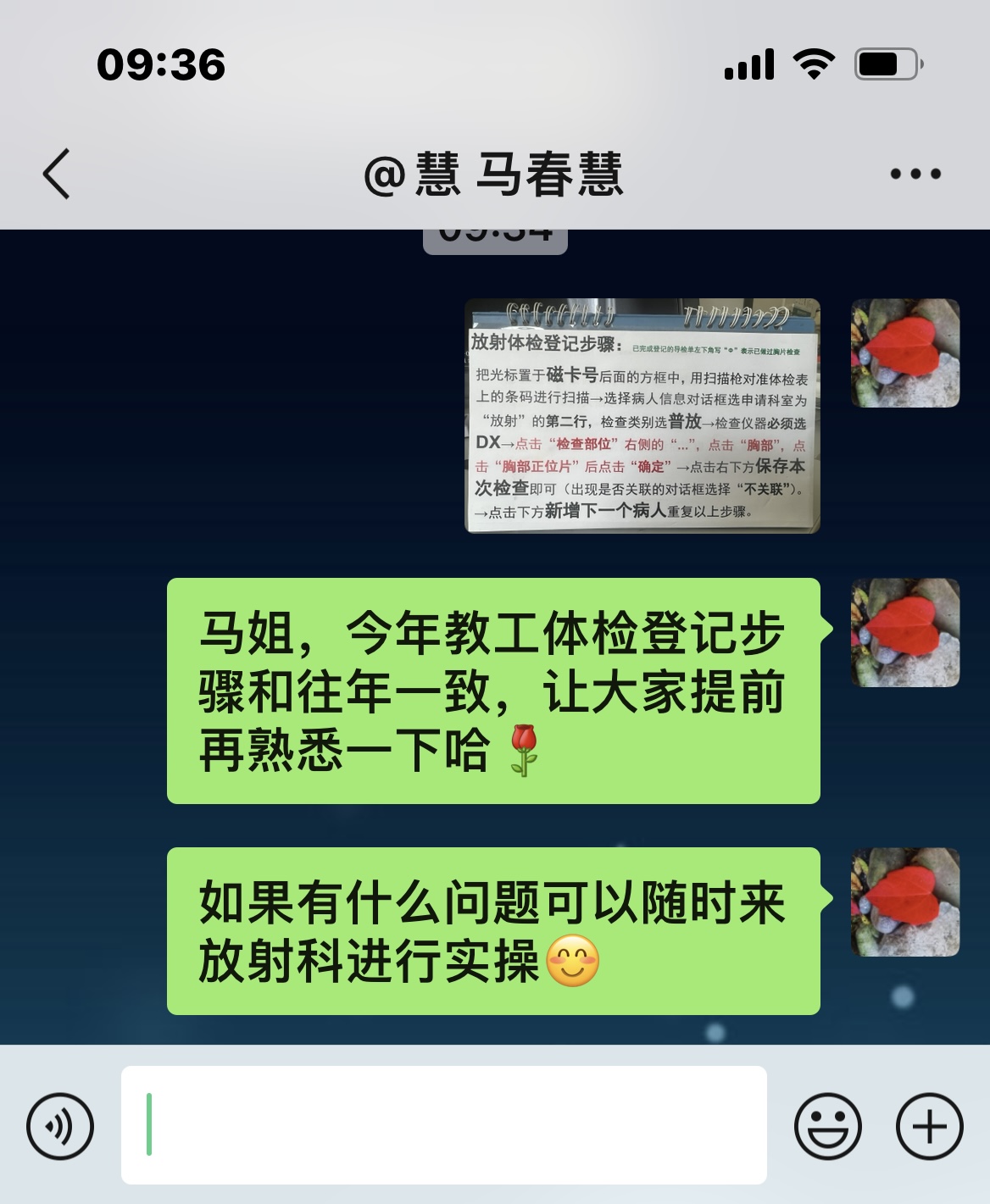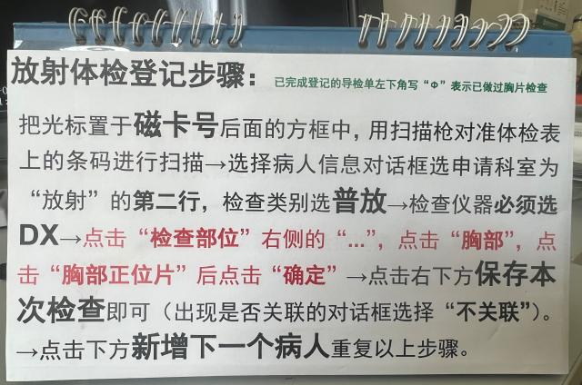 2、登记人员岗位培训:因每年教工体检登记人员相对固定,就登记环节操作步骤进行了微信交流的形式,并将详细登记步骤做成了标牌以确保每个体检日登记的准确性。
