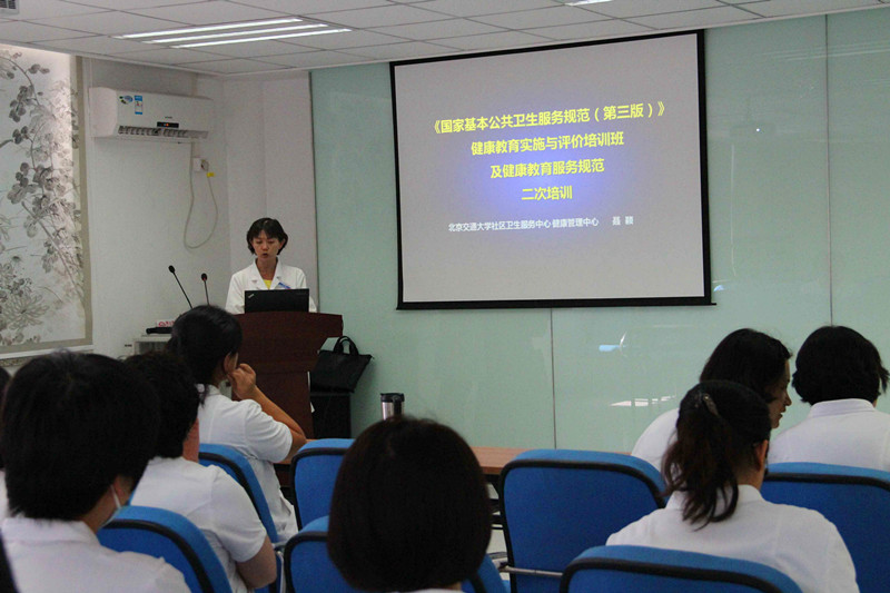 2017年,北京市健教所和北京市海淀区疾病预防控制中心组织了多次关于健康教育的培训,并要求各单位进行院内二次培训,老太阳集团tcy8722网站都派专职人员参加了培训。医院非常重视对《国家基本公共卫生服务规范(第三版)》的培训。2017年9月15日中午,由孙亚慧副院长在全中心做了题为《老年人健康管理》的培训,并重点阐述了新版规范中,对老年人健康管理的要求,并结合我中心的具体管理情况,提出了问题和相应的解决方案。2017年9月19日中午,在白丽霞老师结束督导工作后,医院聂颖副主任医师在院内做了讲座,主要是传达7月11至12日,北京市健教所举办的《国家基本公共卫生服务健康教育实施与评价培训班》和8月10日北京市海淀区疾病预防控制中心组织的《海淀区2017年健康素养——科学健身系列培训及国家基本公共卫生服务规范健康教育工作培训会》的精神。她首先介绍了常春教授关于《国家基本公共卫生服务规范(第3版)》的培训内容,然后结合老太阳集团tcy8722网站上半年开展健康讲座的情况,汇总了讲座及PPT制作中出现的问题,重点讲解了如何进行幻灯片的制作。