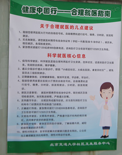 2015年4月8日,交大医院负责健康教育的医务人员在交大社区设立服务咨询台,开展2015年“健康中国行——科学就医”义诊咨询主题宣传活动。此次活动旨在提高广大师生和数千万居民科学就医的知识和技能,减少就医误区,引导大家科学就医,合理利用医疗卫生资源,推动落实分级诊疗制度,形成尊重科学、尊重医学和医务人员的社会风尚,维护健康、构建和谐社会。医务人员就科学就医、分级转诊对居民进行了宣教,重点针对分级转诊的具体规定和相关政策进行讲解,还向前来咨询的师生发放宣传资料。
