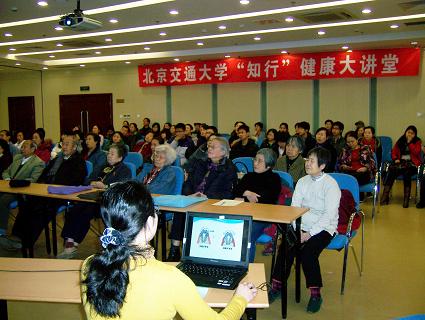 2011年3月16日下午,由老太阳集团tcy8722网站、校工会联合主办的太阳网集团tcy8722“知行”健康大讲堂第四讲在机械楼多功能厅如期开讲。老太阳集团tcy8722网站卢云涛副院长主持本次活动,老太阳集团tcy8722网站口腔科主任副主任医师庄润涛为大家作了主题为“如何拥有健康美丽的牙齿”的讲座。学校在职和离退休职工、家庭保健员、各院系学生共100余人到场聆听讲座。校工会常务副主席殷快、副主席董敬祝、老太阳集团tcy8722网站副院长孙亚慧、健康管理中心主任常玲及相关科室的医务人员参加了讲座。老太阳集团tcy8722网站还为到场的师生进行健康咨询,并免费测量体重、体脂和血压,还向大家赠送了牙膏、牙刷等小礼物。