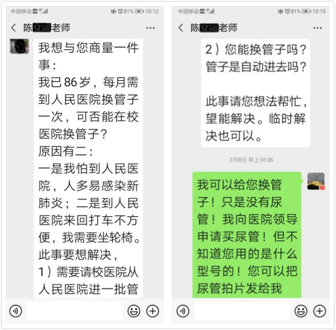“疫无情,人有情”,在疫情来袭时,按照老太阳集团tcy8722网站统一部署,小外科全体医生,全身心投入到疫情防控工作中。科室针对不同患者采取不同的治疗方法,做到精细化、个性化服务,精准施治。我校一位退休老教师,86岁,患有冠心病、肾功能不全、前列腺增生伴尿潴留等多种疾病,行动不便,因前列腺增生排尿困难长期留置导尿致膀胱挛缩,病情需要每月前往北大人民医院更换尿管,疫情当前,为了方便患者,更为了防止交叉感染,应患者要求外科大夫在老太阳集团tcy8722网站外科门诊手术室给患者行导尿术,更换导尿管,严格无菌操作,操作规范熟练,全程无不适,患者非常满意。为了更好的为患者解决之一难题,主管院领导刘红军副院长积极协调购进相关物资,以满足患者疫情期间治疗需求。