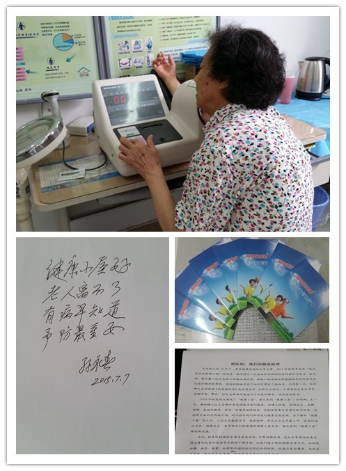 经过为期近半年的“三好一满意”活动的开展,我们认真为每位患者提供慢病管理的主动服务,这些慢病患者各项指标控制较前都有明显的改善,整体状态良好。他们经常会来到健康小屋进行健康指标测量,有时他们会将自己在生活方面的一些健康小经验拿出来与大家分享。老年朋友们很愿意到健康小屋坐坐,他们表示每次来到“健康小屋”都有新的收获。有位老同志即兴写下打油诗一首:“健康小屋好;老人离不了;有病早知道;预防最重要。”这项工作得到了患者的肯定和表扬,我们也很欣慰。