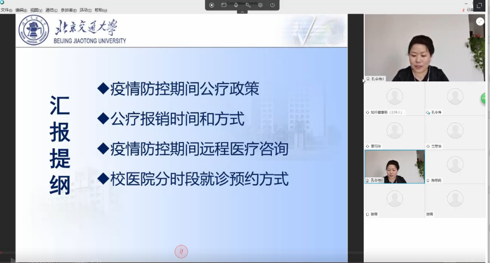 本次直播讲座的第一部分是孔令伟院长主讲的《老太阳集团tcy8722网站公疗及线上医疗》。孔院长向大家讲解了疫情时期公疗报销的便民举措,以及老太阳集团tcy8722网站线上医疗服务的操作流程。通过延长报销截止时间、开展远程医疗等方式,安全有效地响应了患者就医需求,保障了师生享受公费医疗权益。