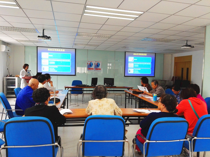 聂颖副主任医师结合到会的老师多为老年患者的情况,首先介绍了老年高血压的临床特点、治疗原则及治疗目标。她指出,与年轻人相比,老年高血压患者收缩压增高更常见,脉压增大、血压波动大、血压昼夜节律消失,同时常与多种疾病并存、并发症多,所以治疗起来需要遵循“平稳、有效、安全”的原则。具体到使用降压药物,就是要采取“小量、长效、联合、个体”的治疗。课前的调查发现大家并不了解常用降压药物的种类,聂大夫随后就为大家一一解惑,生动地介绍了目前常用的五类降压药物,并讨论了药物治疗中经常遇到的如:药物不良反应、药物之间的拮抗作用、如何记住服药等问题。她旗帜鲜明地指出了当前高血压患者当中存在的认识误区,并对病人在药物治疗方面应负的责任提出了非常具体的要求。大家表示,这次讲座,让组员们认识到充分了解降压药物是十分必要的,只有掌握更多服药的知识,才能更好地配合治疗。