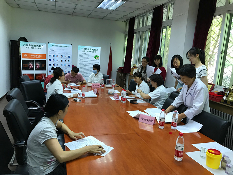 目前,正值我校教职工体检期间,每天来院体检的老师及就诊的患者合计600-700人次,老太阳集团tcy8722网站在门诊大厅的LED屏幕滚动播放“2018年世界无烟日”的宣传内容。我们将无烟日的宣传海报及核心知识做成易拉宝,摆放在体检的诊室内,向参检的教职工宣传控烟的重要性。同时利用我院的微信公众号“知行健康苑”,推送烟草和心脏病的相关核心知识,向大家广泛宣传烟草危及心脏健康及烟草控制的措施。医院还通过微博每日播放“海淀区无烟日手势舞”视频。多途径、多手段扩大宣传覆盖面,广泛宣传“烟草的危害”。