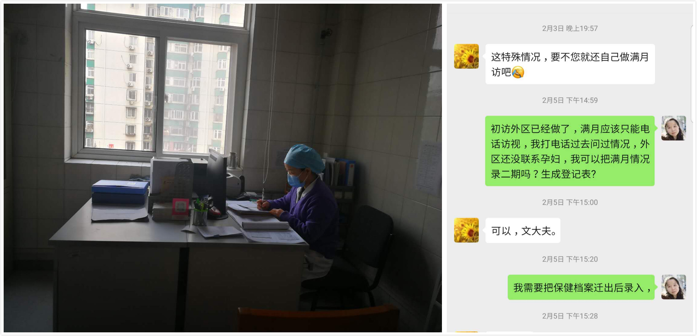 越是非常时期,越是需要我们细致工作。每天上班第一件事“浏览二期”产妇信息,关注分娩情况,并且第一时间联系沟通。对于预产期1-3月份孕产妇再次梳理,了解目前动态,逐一打电话沟通加强防控意识,交代产后访视及新生儿保健的相关政策。