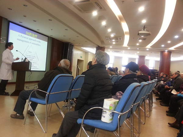 2014年12月12日,针对老年朋友多发的骨质疏松、骨关节病情况及健康教育需求,中心邀请到了世纪坛医院骨科主任于方教授来到交大社区,专门为老年朋友做了骨关节病的健教和咨询。许多居民携带X线片,在现场接受了于方教授的咨询和会诊。