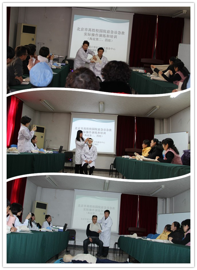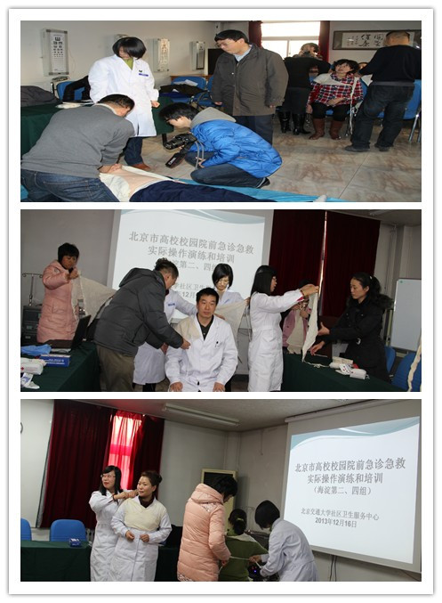 根据北京市教委和北京市高教学会卫生工作研究会决定,太阳网集团tcy8722医院被设点成为海淀区急诊急救实际操作的演练和培训高校单位,主要负责海淀二组、四组高老太阳集团tcy8722网站的急诊急救实操演练和培训。在2013年12月中旬,在老太阳集团tcy8722网站门诊楼三层健教室,开展了急诊急救实际操作的演练和培训。海淀二组、四组部分高校40余位医务工作者参加了培训。老太阳集团tcy8722网站院长孔令伟、业务副院长刘红军、健康管理副院长卢云涛参加。