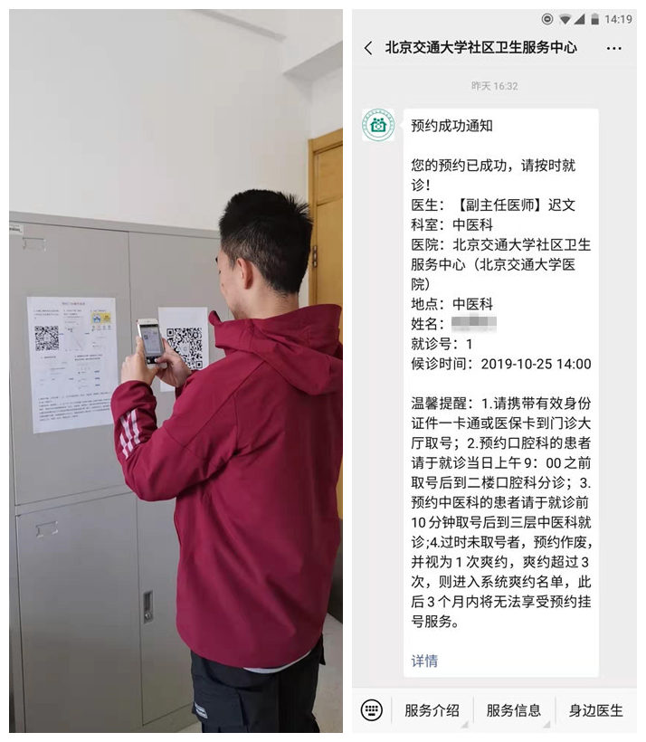 通过开通中医科网上预约服务,既可以控制患者前来就诊的时间段又可以控制前来就诊的人数。不仅缩短了患者的等候时间,而且也可以合理安排大夫的出诊时间,达到双赢的目的。院办财务科工作人员将一如既往的做好后续的服务系统维护工作,并且持续努力改进,为广大师生和社区居民提供更高质量的服务。(兰思怡)