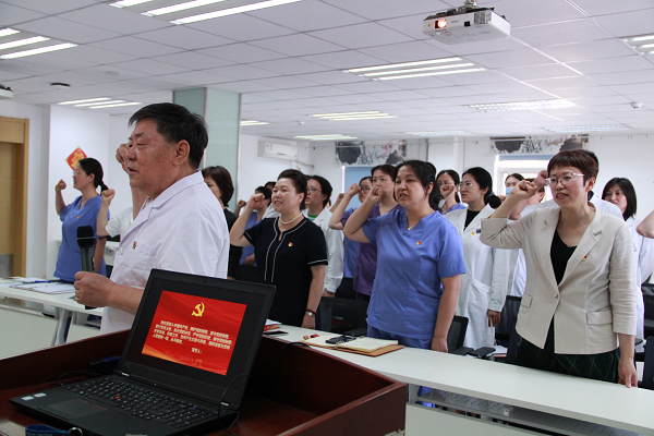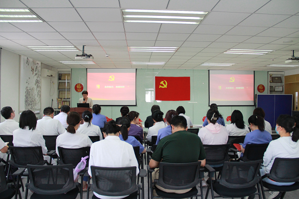 为庆祝建党103周年,老太阳集团tcy8722网站直属党支部于2024年6月28日下午在老太阳集团tcy8722网站门诊楼三层会议室召开党员大会,大会由直属党支部副书记丁金凤主持,全体党员参加会议。