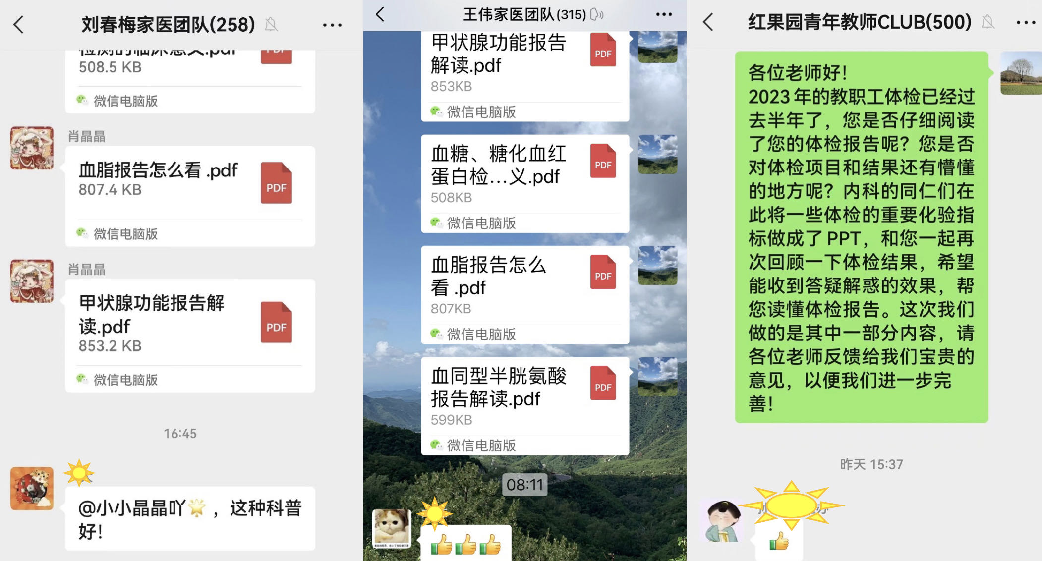 本次共制作了七个PPT,通过家医团队和教职工、离退休等各种微信群发布,便于大家随时查询和阅,收到了老师们的好评。通过这次活动也展示了内科医生们的专业实力和职业素养。今后我们还将继续做好临床服务、关注师生的健康需求,竭尽全力为师生提供健康保障。(内科 王伟)
