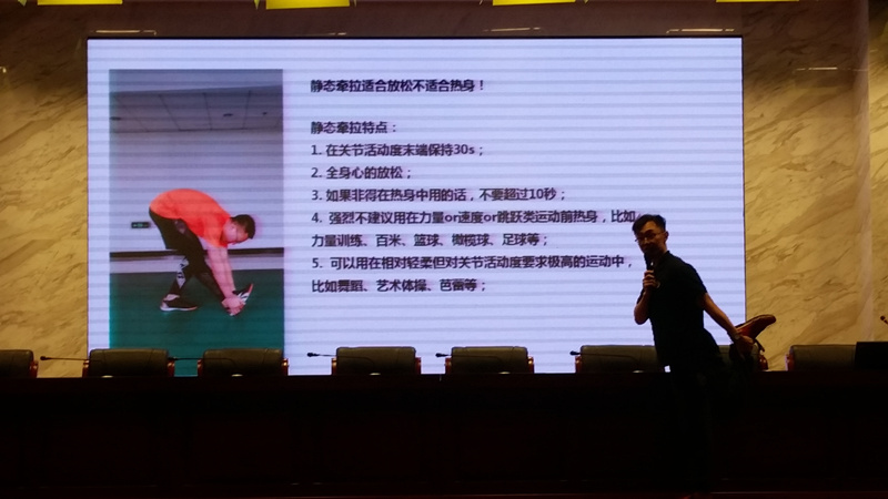 紧接着,海淀疾控中心的运动专家,又针对健康骨骼这一内容进行讲解,日常运动的注意事项以及运动不当会引发的多种运动损伤,图文并茂地演示了各种伸拉形式、正确的热身方式。台下指导员们听后频频点头,都表示收益颇丰。
