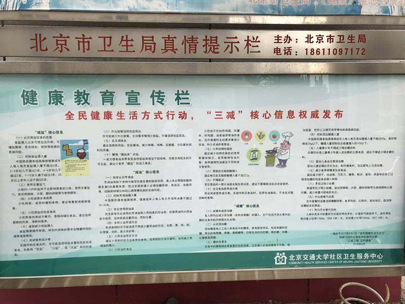 为进一步推动全民健康生活方式行动的深入开展,海淀区卫计委今年仍然遵循“坚持政府主导、部门协作、动员社会、全民参与”的指导原则,在各社区卫生中心普及全民健康生活方式。