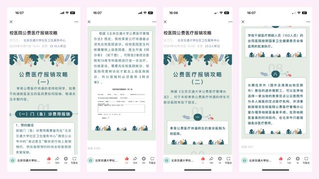 第一期攻略详细介绍了公费医疗门诊费和住院费的报销流程、报销到账时间以及报销时需提供的《转诊单》的必要性等相关信息。第二期攻略则列出了享受公费医疗待遇的师生可前往就诊的医院列表,为师生就医提供了便利。