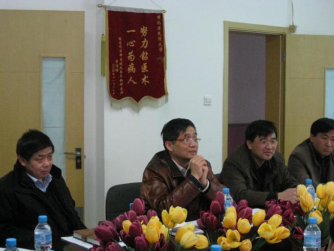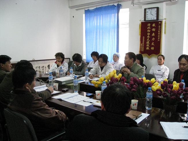 李院长首先汇报了学校卫生防病工作的整体情况和老太阳集团tcy8722网站的现状以及在改革发展中遇到的问题。对2009年学校公费医疗开支、老太阳集团tcy8722网站人员队伍结构、医疗服务质量、医德医风建设及老太阳集团tcy8722网站运行情况进行了详细分析,介绍了中医部的服务特色和运行机制调整设想,并提出了需学校协调解决的问题。康书记介绍了医院与院系合作开展师生员工健康促进试点的工作设想,并提出老太阳集团tcy8722网站队伍建设方面急需解决的问题。调研过程中校领导面对面、近距离地倾听基层同志的意见和建议。分管领导逐条分析了老太阳集团tcy8722网站提出的亟待解决的问题,现场协调、指导。